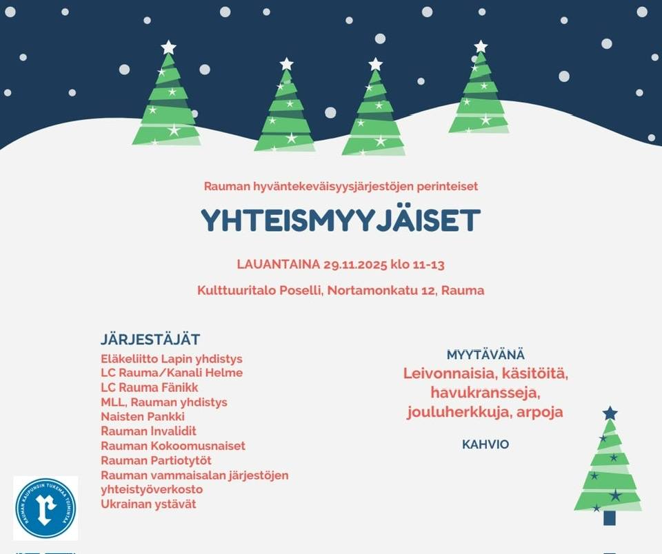 Yhdistyksemme osallistuu 29.11.-25 klo 11-13 Posellissa järjestettäviin yhteismyyjäisiin.